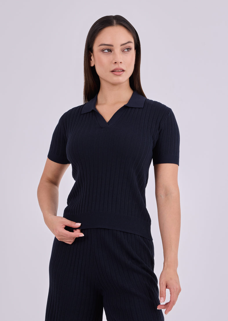 Introducing the Women’s Silk Touch Knit Polo, an elevated summer essential crafted from soft, silk-touch yarns. Designed with a slim fit and a large rib stitch throughout, it offers a refined silhouette with beautiful drape. Finished with an open placket collar and subtle metal plate logo, this polished piece transitions effortlessly from day to evening.